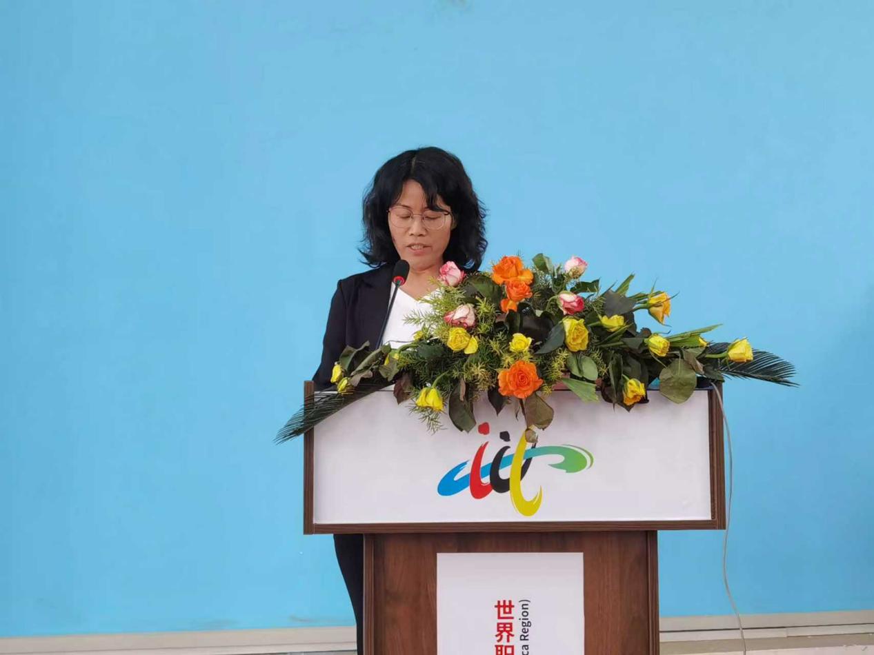 开幕式上,中国教育部职业教育与成人教育司副司长李智、赞比亚科技部部长Felix Mutati、中国有色矿业集团中南部非洲区域总部总经理王首高,有色金属工业人才中心党委书记谢承杰、中色卢安夏铜业有限公司董事长李占炎、北京工业职业技术学院苗耀华裁判长、中国-赞比亚职业技术学院院长Yamvwa等通过线上线下相结合的方式出席开幕式并致辞。