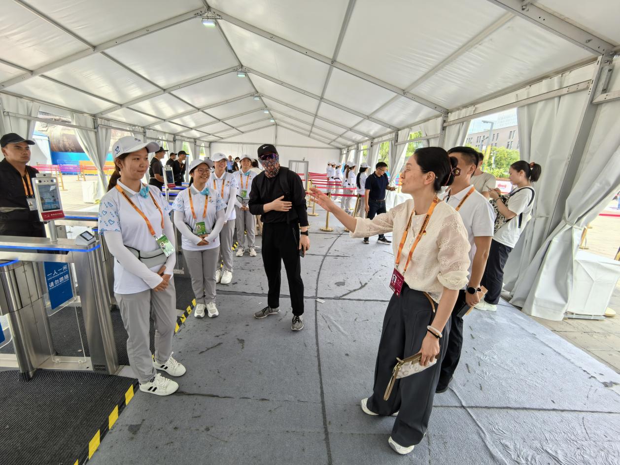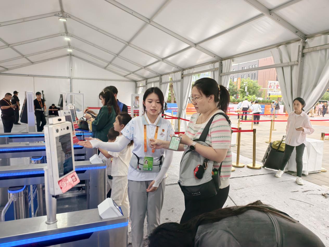 本次服贸会,我校志愿者承担了为参观人员提供刷脸入场线路引导、乘车指引、信息咨询、路线引导等志愿服务。志愿者们有序分布于入场通道,高效开展入场核验、人流引导、证件检查等关键环节工作。从耐心协助观众验票入场,到配合公安部门进行人证一致性核验,志愿者们用专业的服务和温暖的笑容,有效保障了入场流程的顺畅有序,成为服贸会现场一道亮丽的“青春风景线”。
